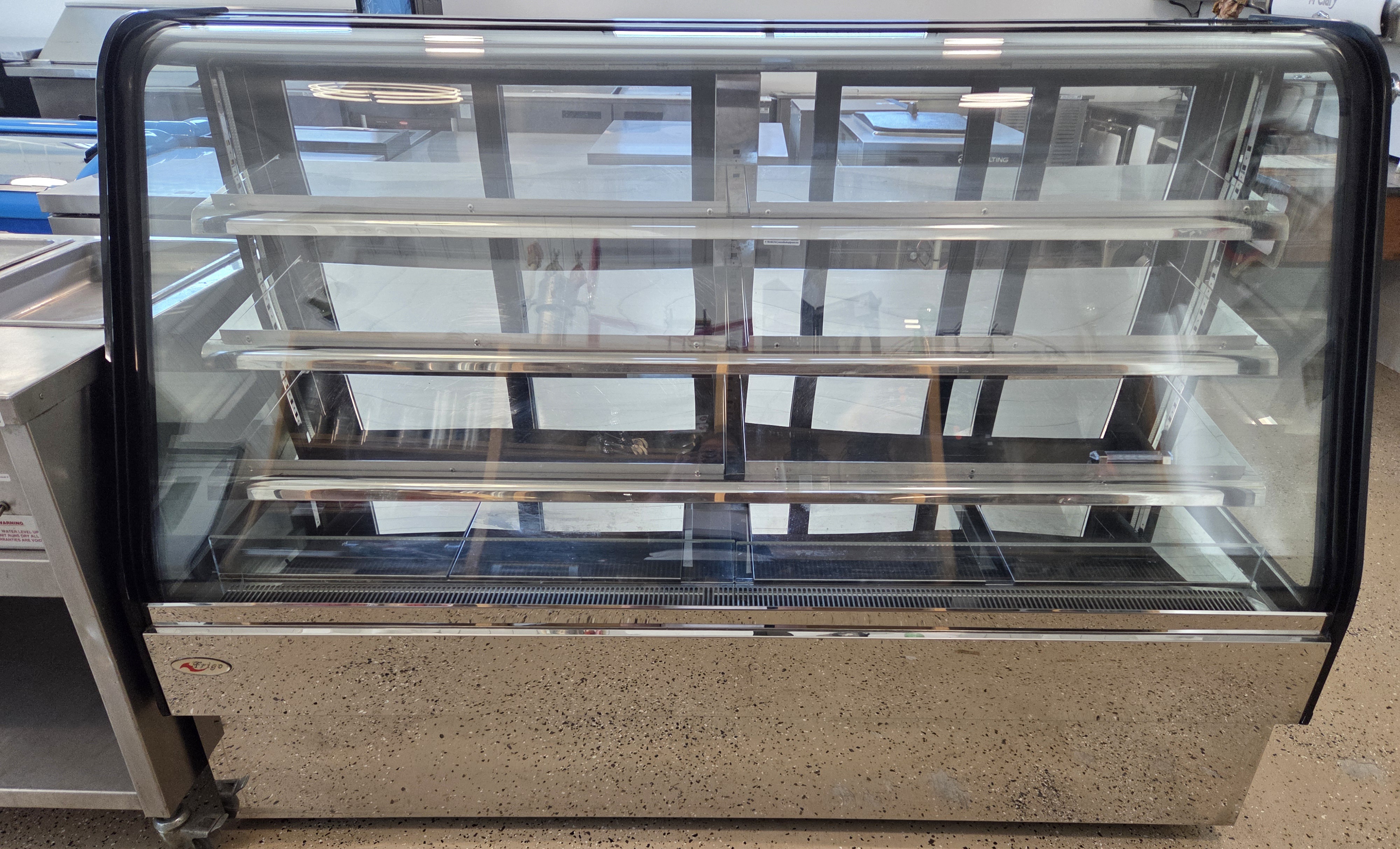 REFURBISHED...6 foot display case with 3 adjustable shelves and sliding doors on the back.