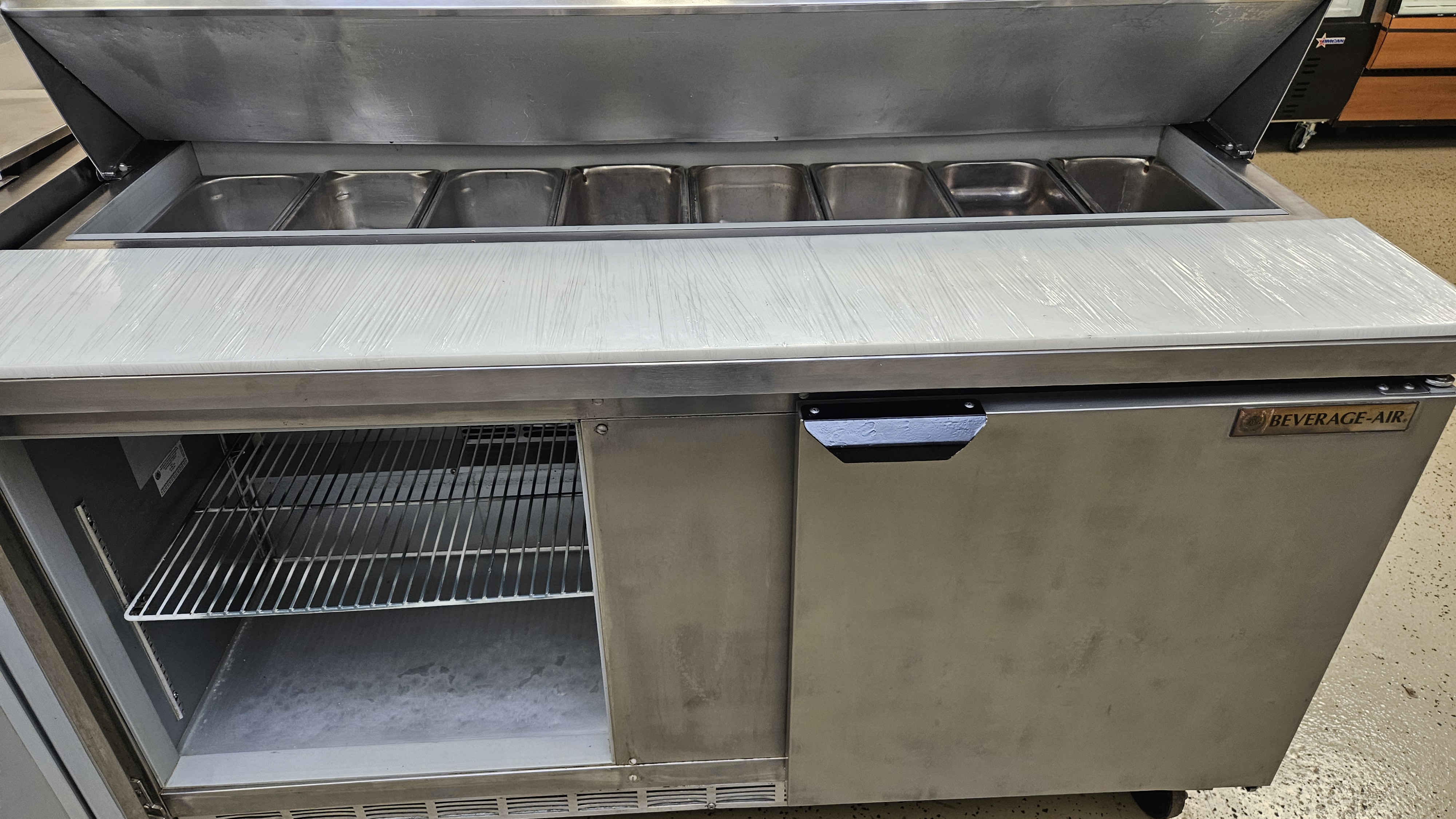 Used 5 ft wide Beverage Air and other manufacture sandwich/salad refrigerated prep tables either mega top or standard to