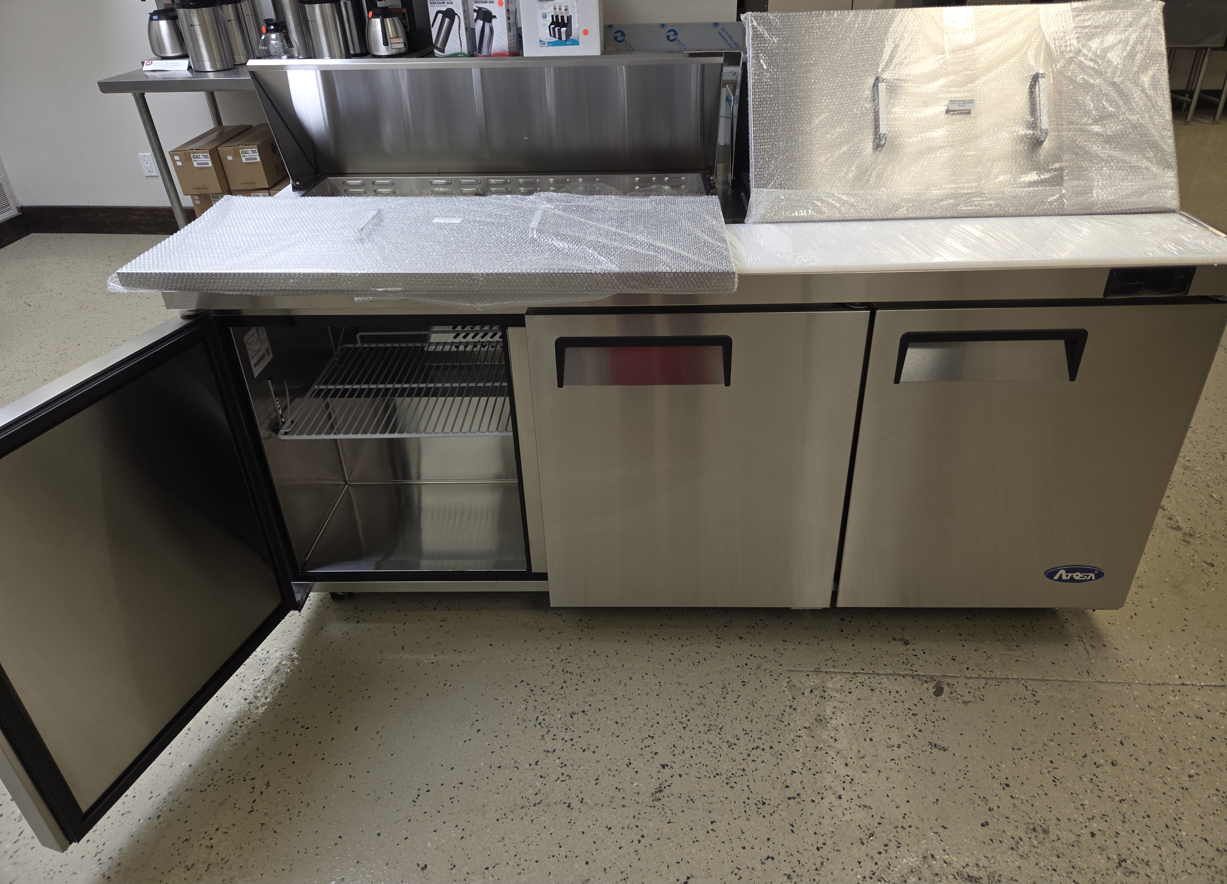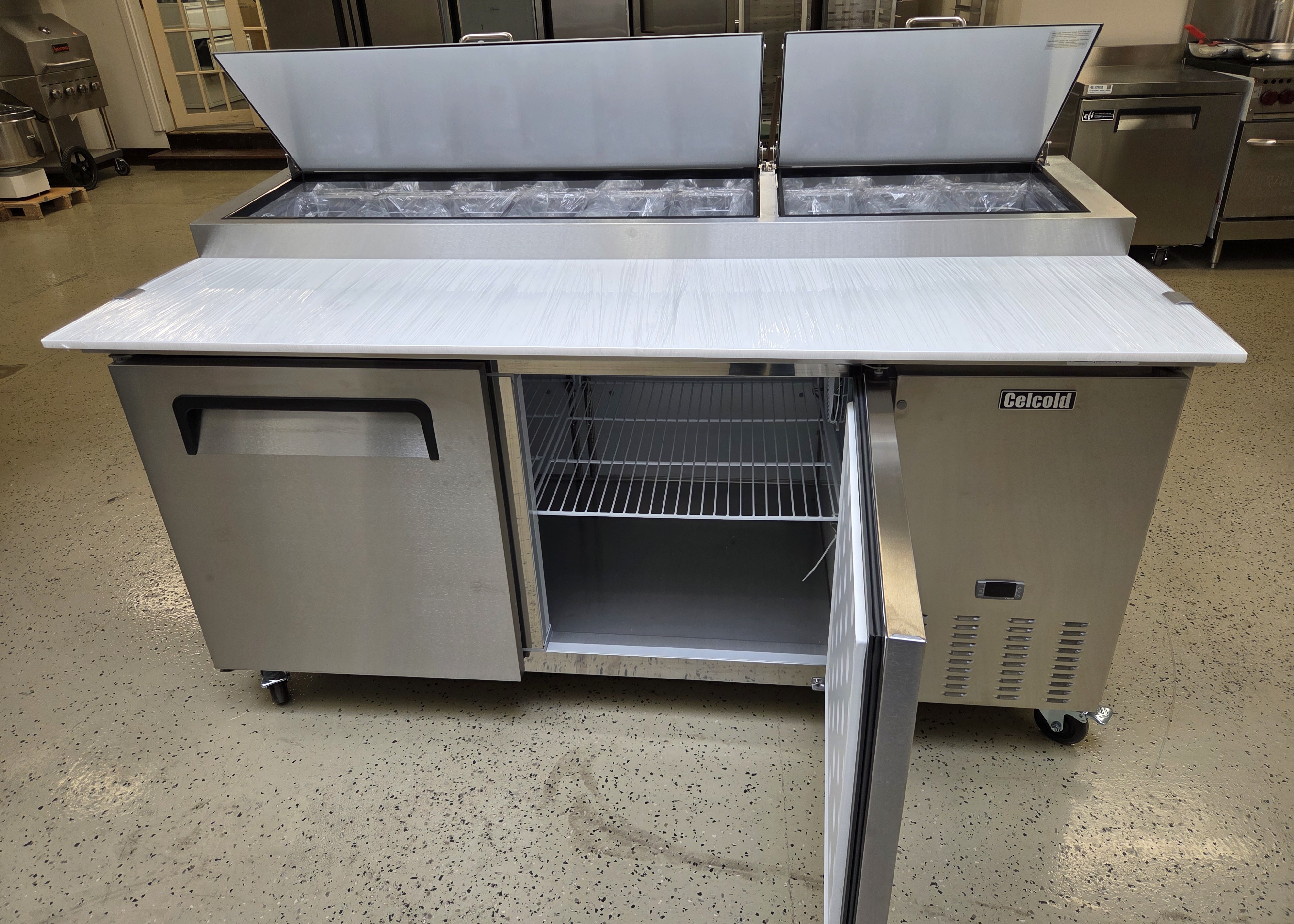 Refrigerated Pizza Prep Table, two-section, 71" W, 34 cu. ft., (12) 1/3 pan capacity, 33°F to 41°F temperature range,