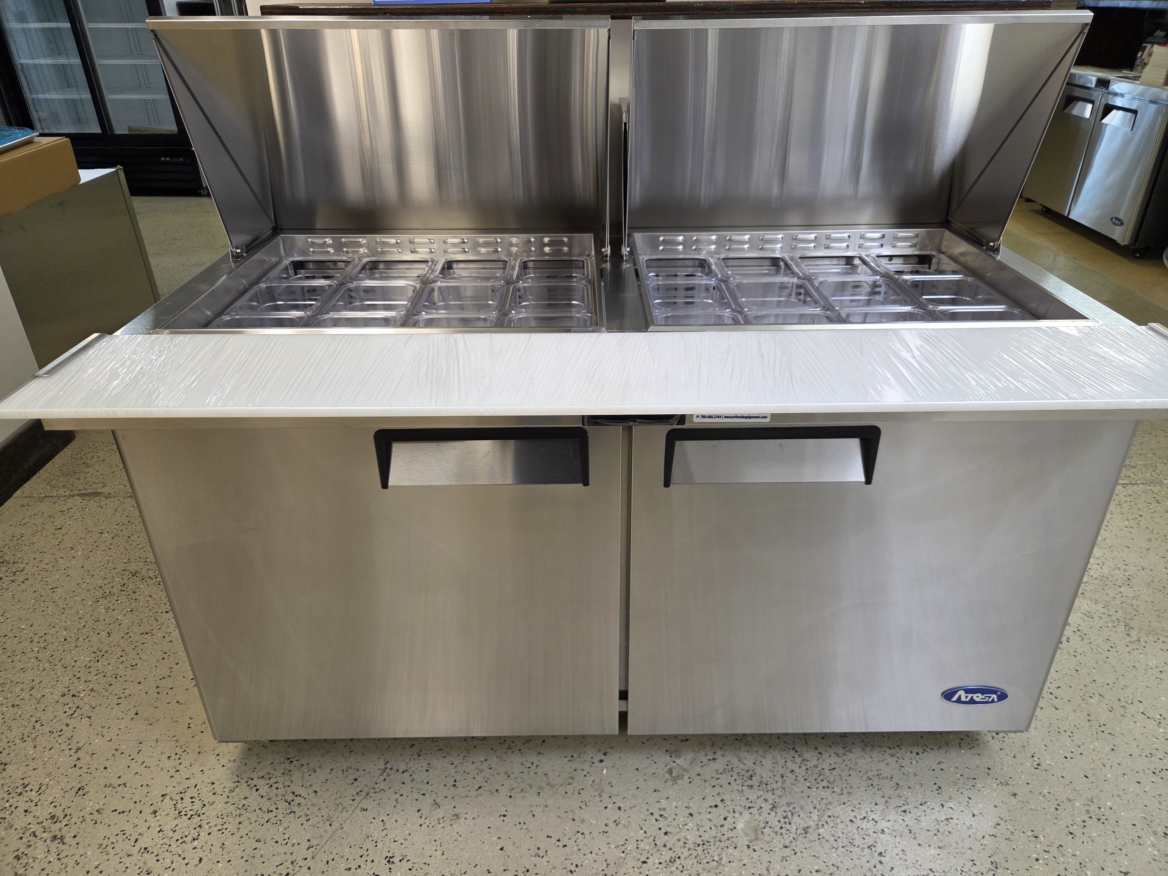 Atosa Sandwich/Salad Mega Top Refrigerator, two-section, 60-1/5"W x 34"D x 46-5/8"H, includes (24) 1/6 poly pans, rear-m