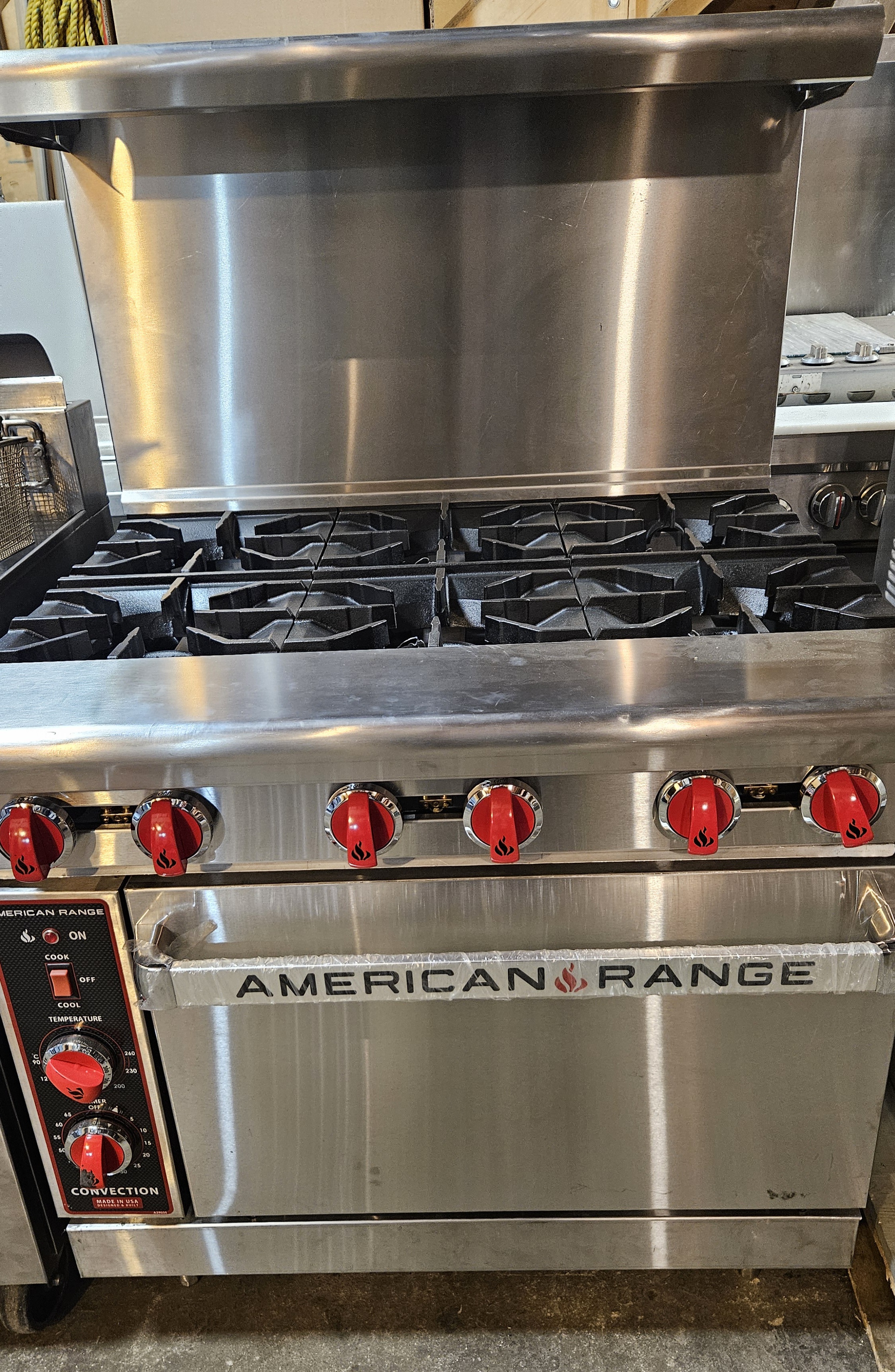 $3999.95 REFURBISHED...Restaurant Range, gas, 36", (6) 32,000 BTU open burners, (1) 26-1/2" convection oven, (2) racks, stainless