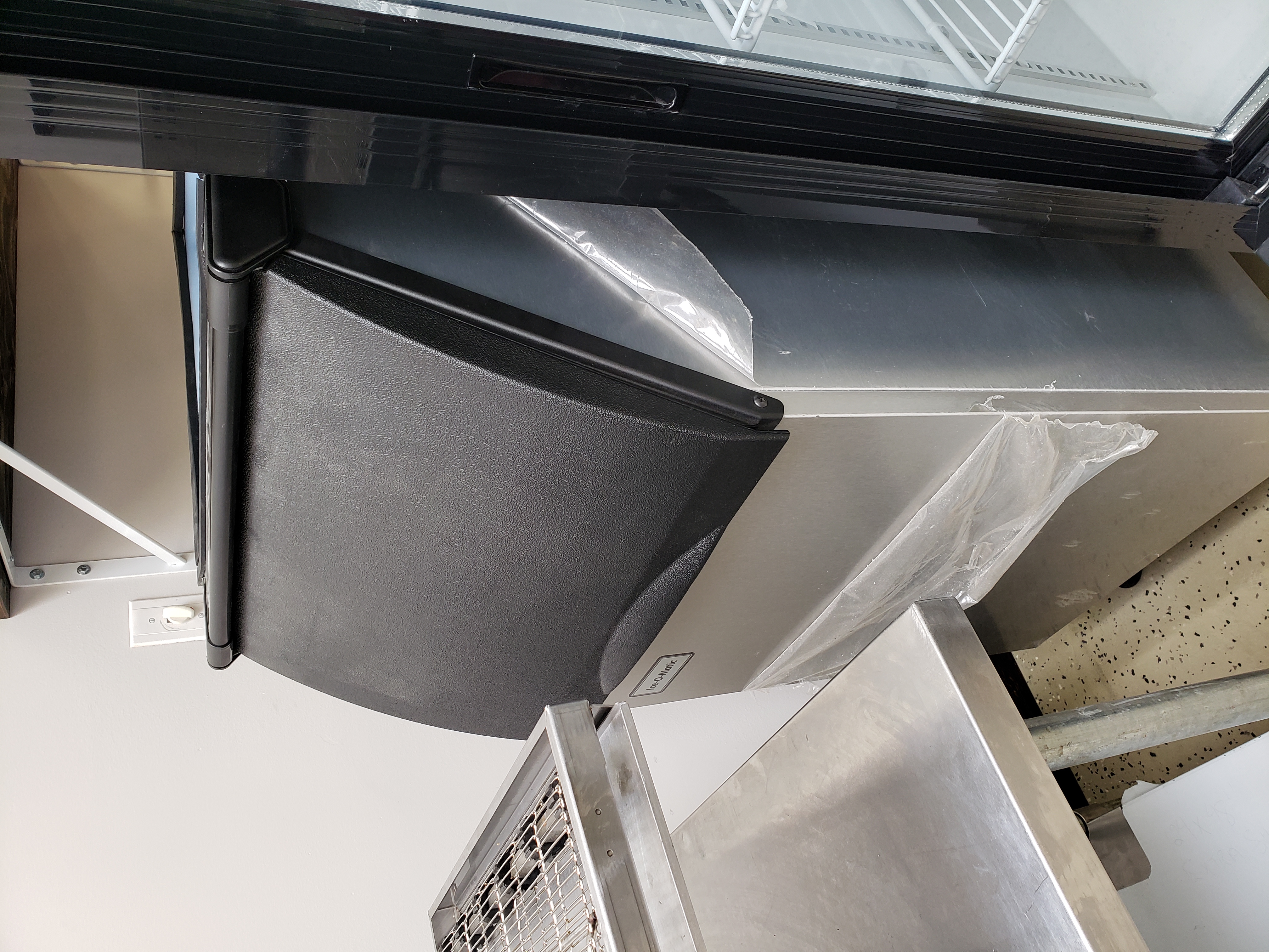 $1585 Ice Bin, 351 lb storage capacity, 22"W, 31"D x 50"H, top-hinged, slope front door, for top-mounted ice maker, polyethyle
